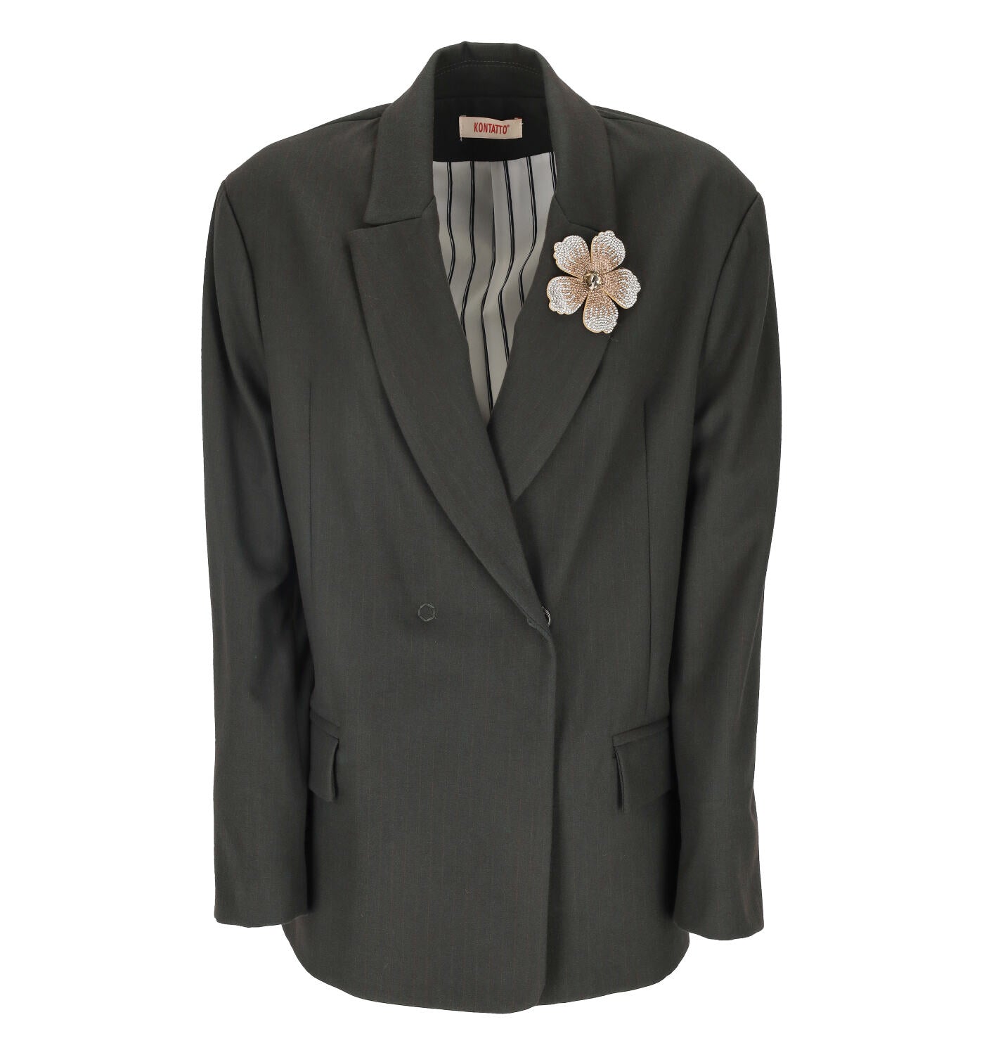 Giacca gessata con spilla
