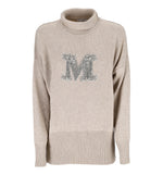 Maglione collo alto in cashmere con logo strass.