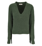 Maglia in lana scollo a v con frange
