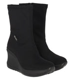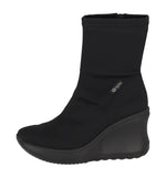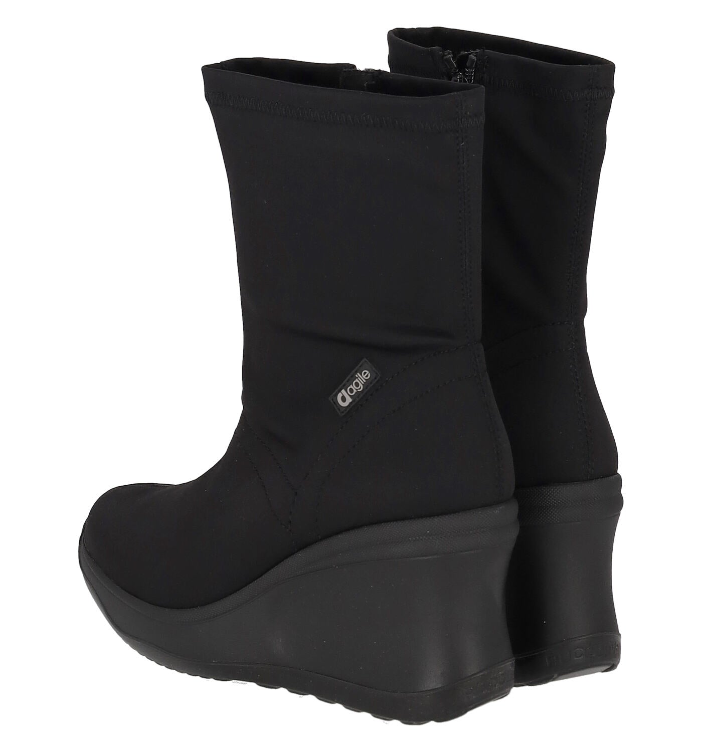 Tronchetto in tessuto elastico , zip a lato e zeppa altezza 8 cm.