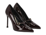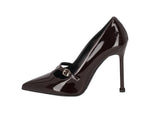 Decollètè in pelle di vernice con cinturino finto sullo scollo, tacco altezza 10 cm.