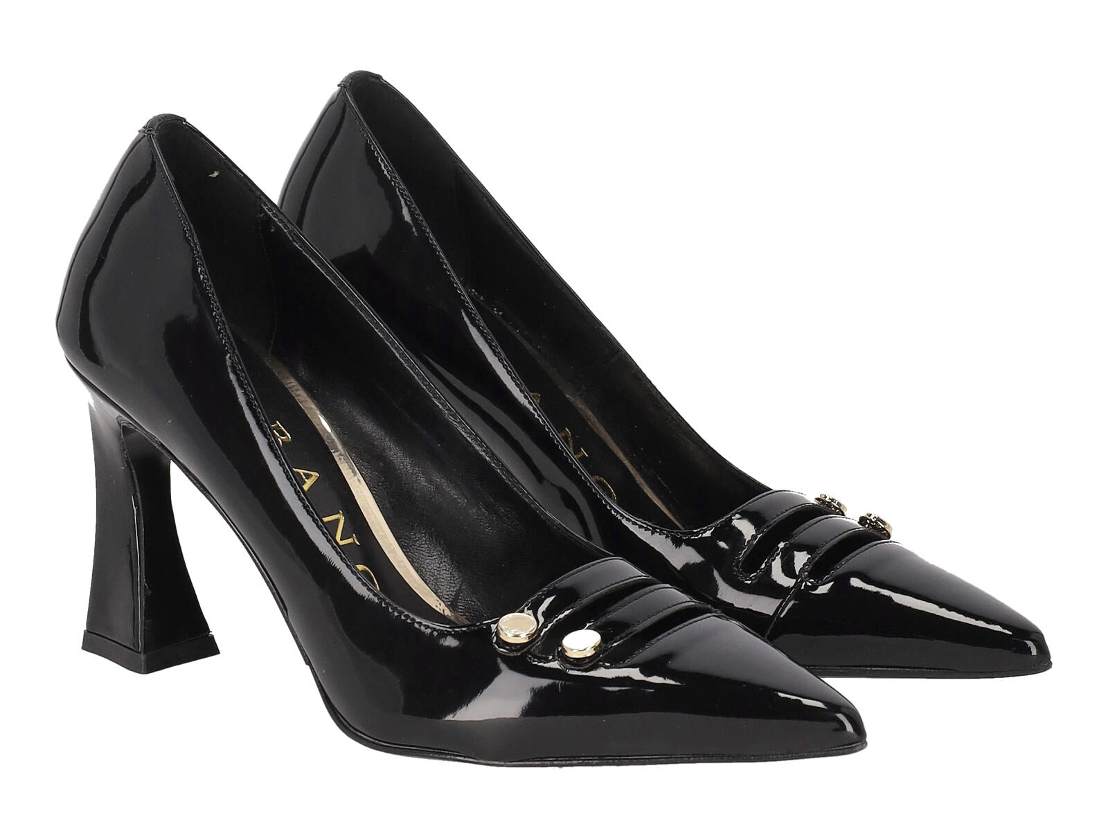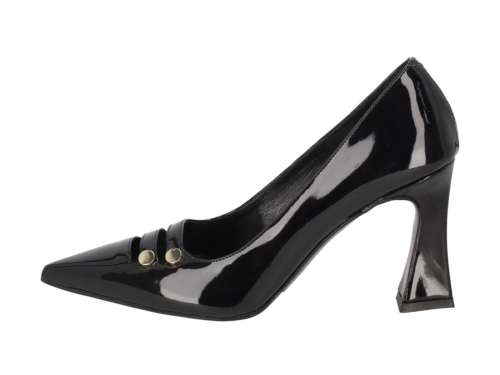 Decollètè in pelle di vernice con tacco largo altezza 9 cm.
