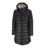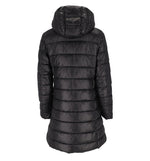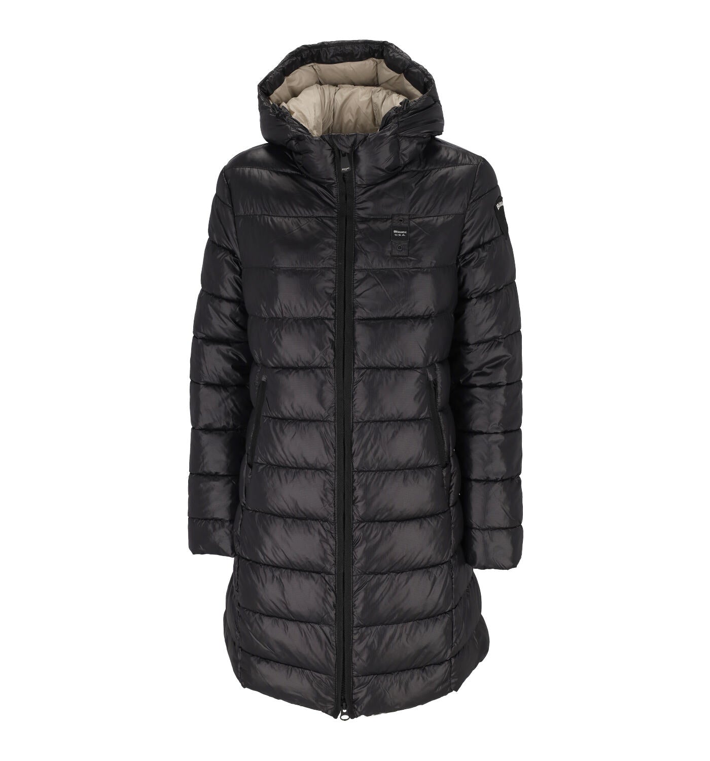 Giubbino lungo con cappuccio , chiusura con zip , logo sul braccio