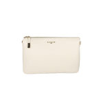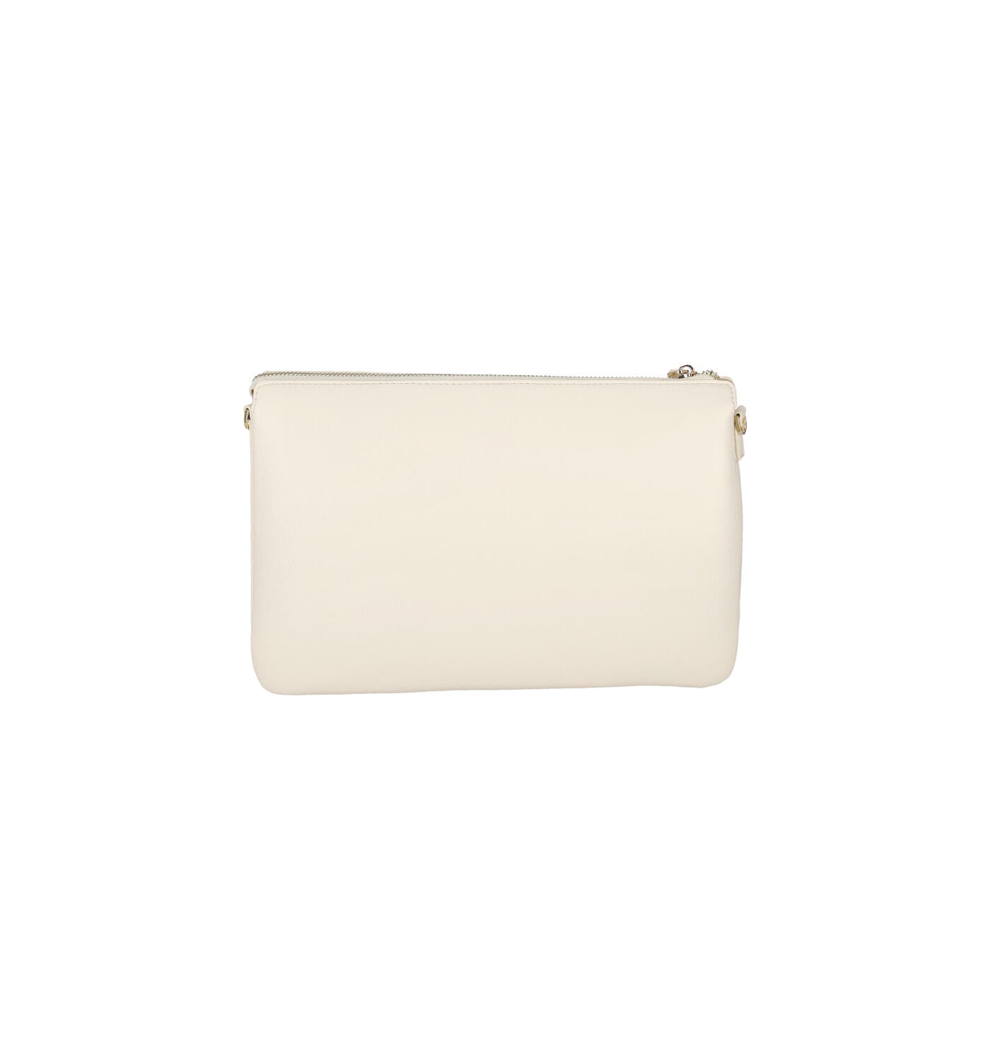 Pochette con tracolla lunga in tessuto removibile. Chiusura con zip