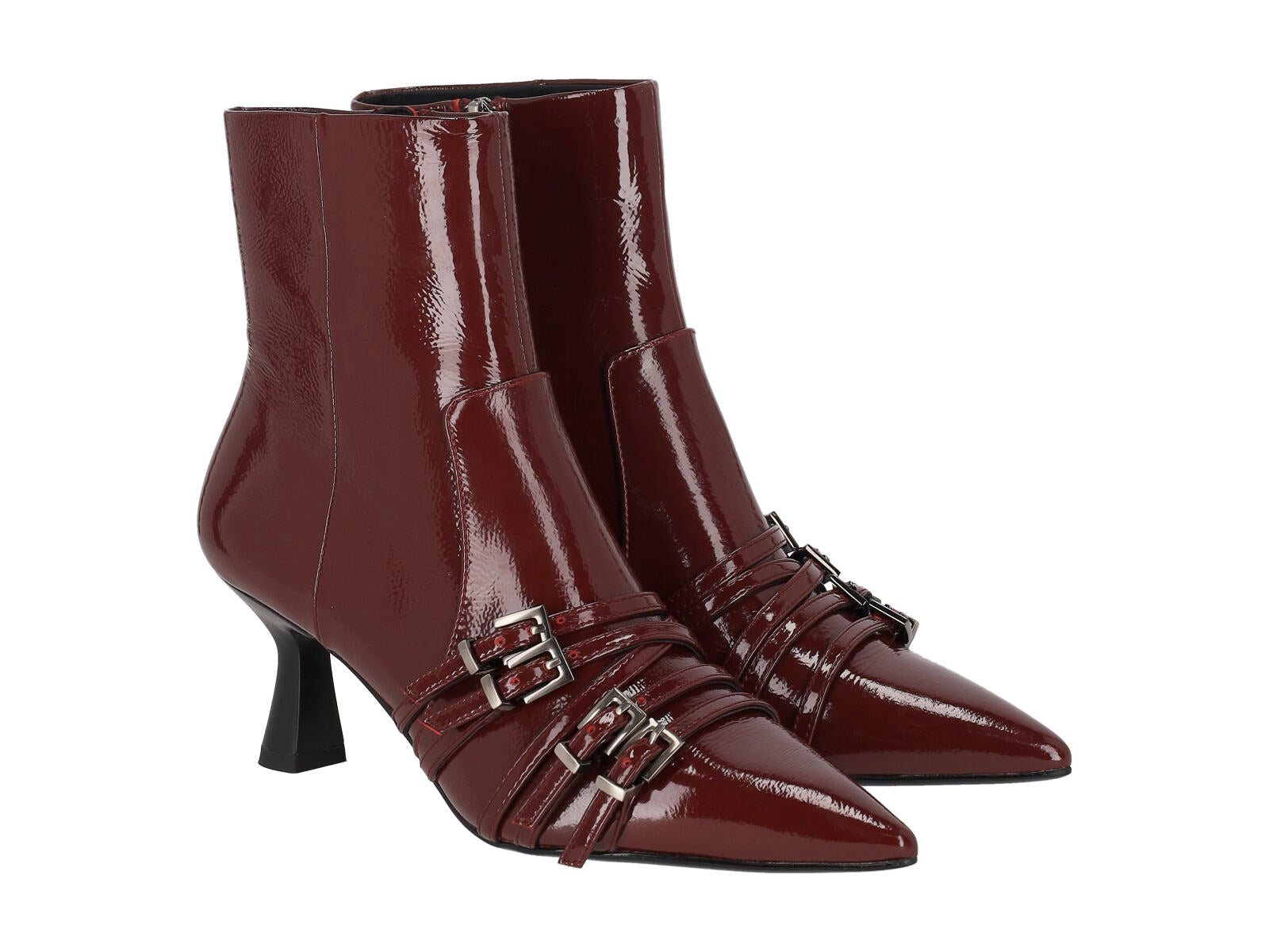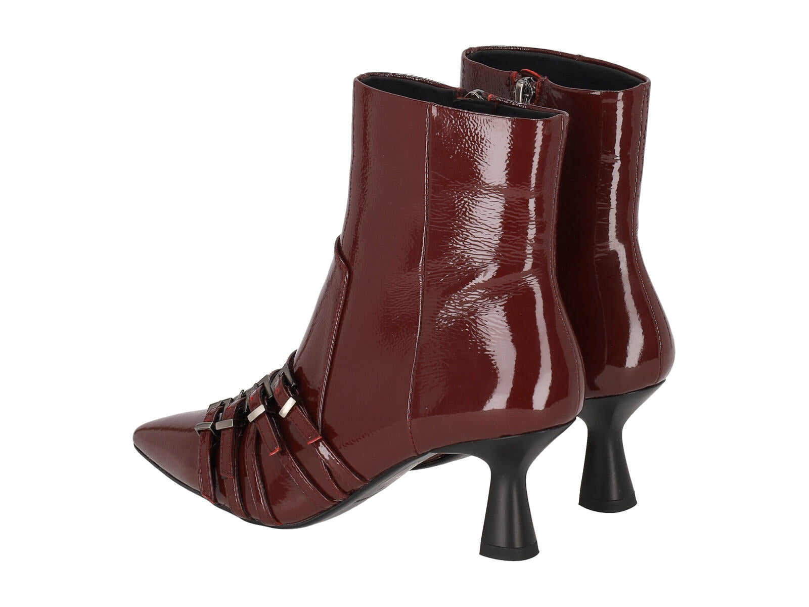 Tronchetto in naplak con fibbie in punta , chiusura con zip. Tacco altezza 6cm.