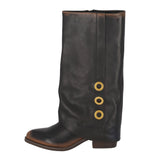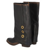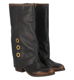 Stivale con risvolto in pelle effetto delavè , applicazione occhielli e tacco altezza 5 cm .