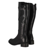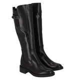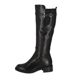 Stivale in pelle con elastico e fibbia sul polpaccio , tacco altezza 4 cm .