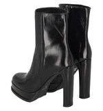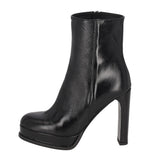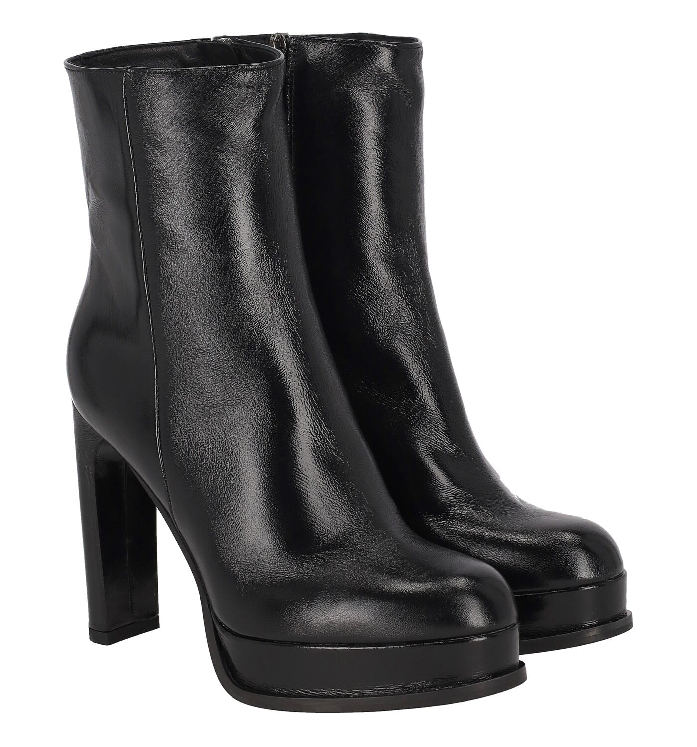 Tronchetto in verlux con chiusura zip , tacco altezza 12 cm .