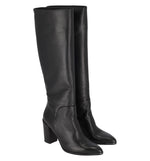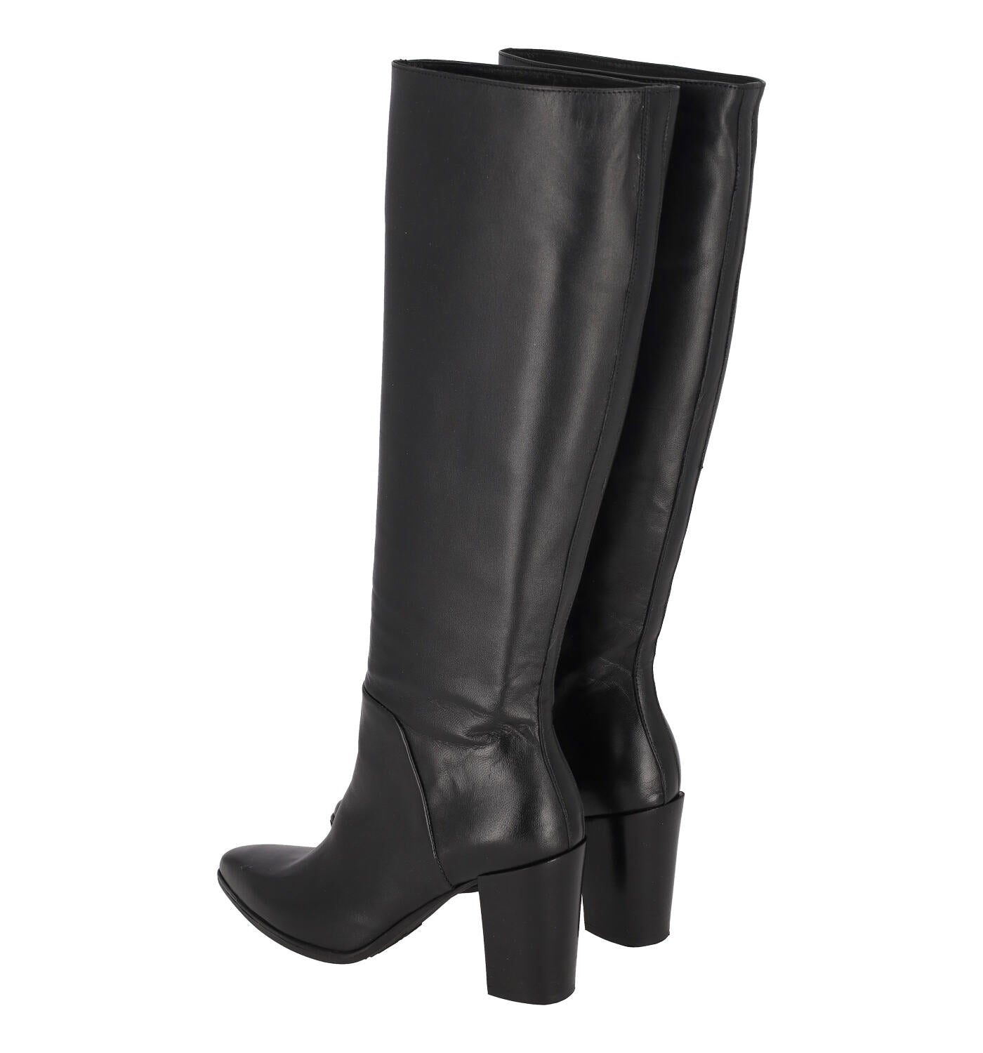 Stivale in pelle con tacco altezza 9 cm , puntalino argento