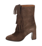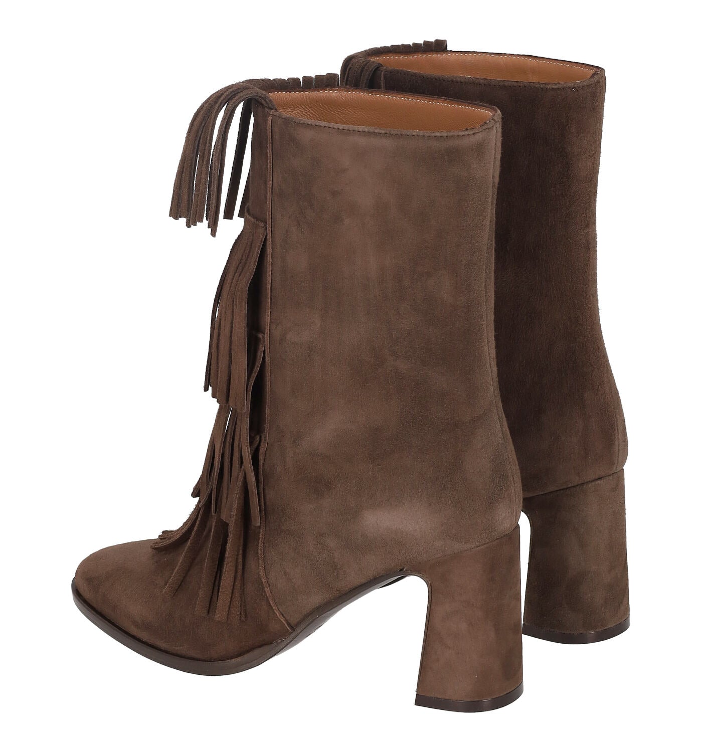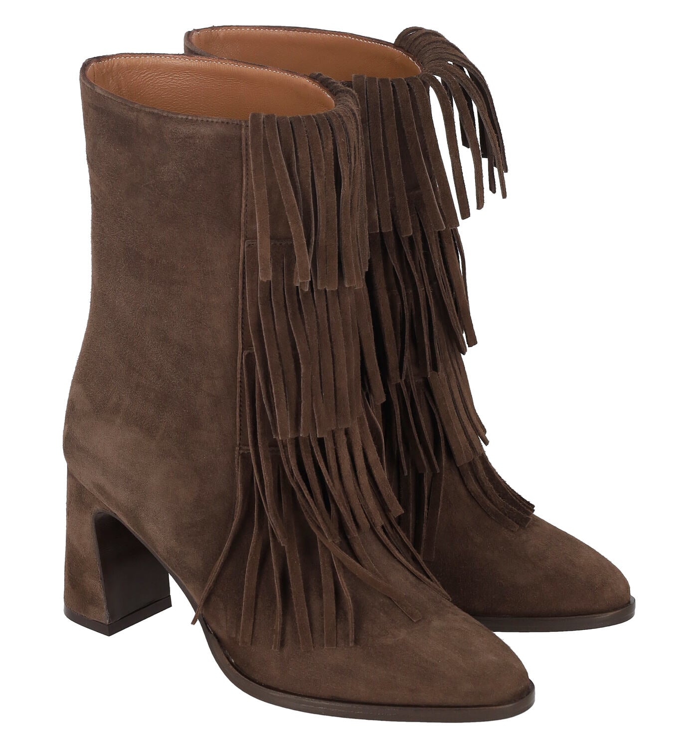 Tronchetto in camoscio con frange , tacco altezza 8 cm.