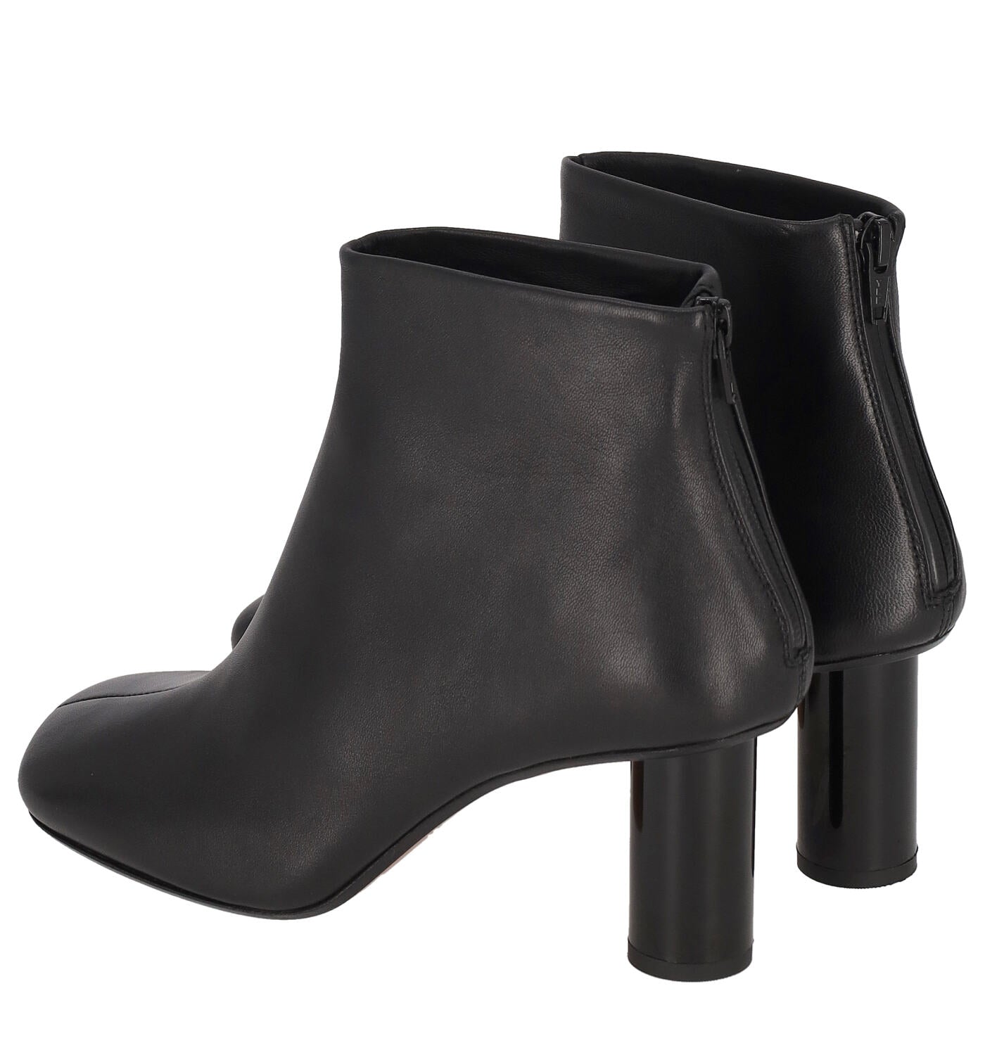 Tronchetto in pelle con tacco tocco lucido altezza 6 cm , chiusura con zip .