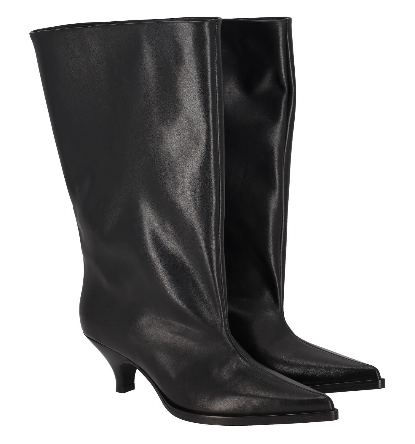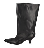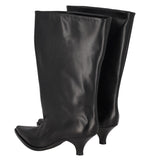 Stivale ampio al polpaccio e altezza gambale 3/4 in pelle , con tacco altezza 5 cm .
