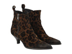 Tronchetto scamosciato leopardato con doppia zip ai lati tacco altezza 5 cm .