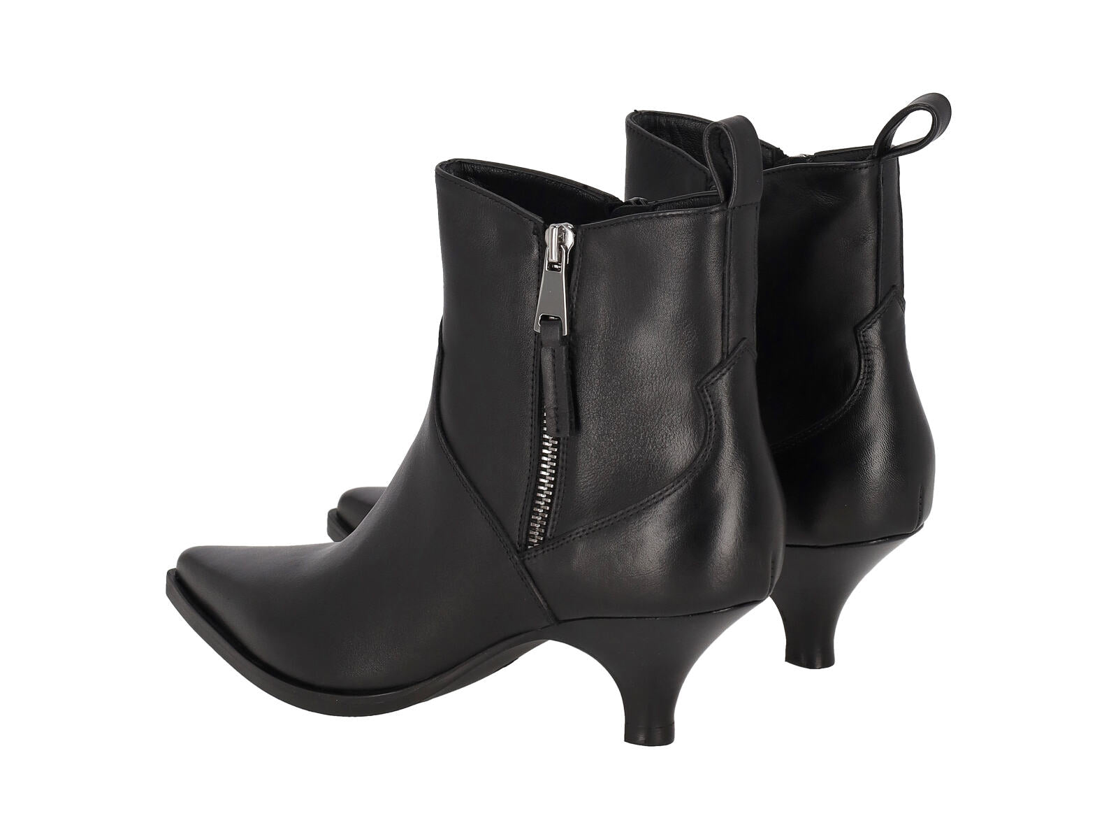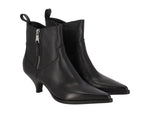 Tronchetto in pelle con zip ai lati , tacco altezza 5 cm.