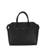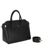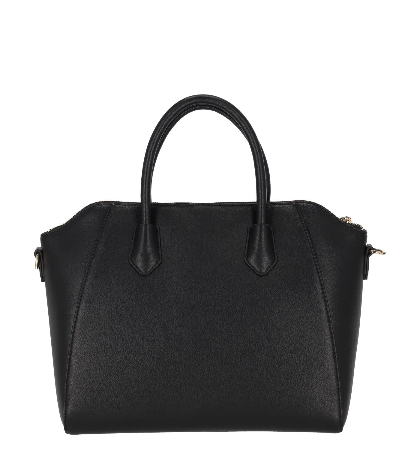 Borsa bauletto con manico corto, chiusura zip e tracolla removibile.