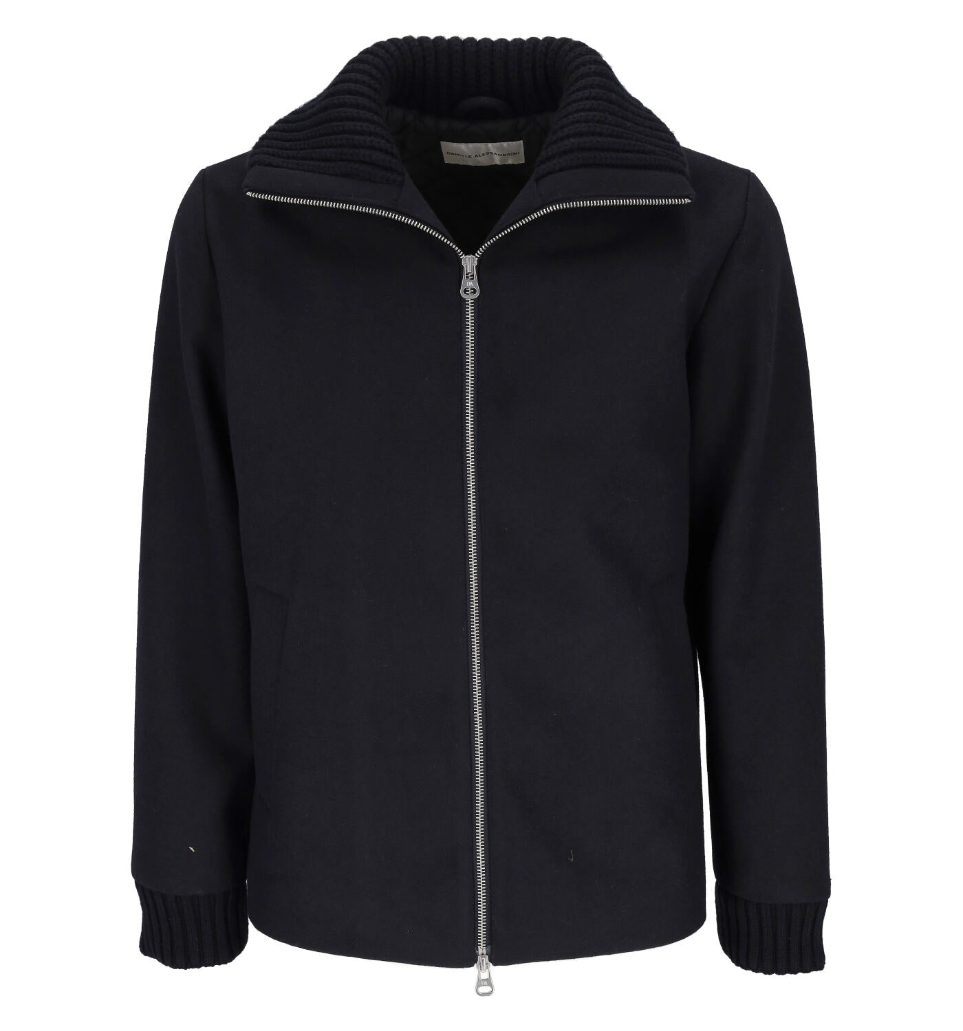 Giacca con collo e polsi in maglia di lana . Chiusura con zip.