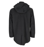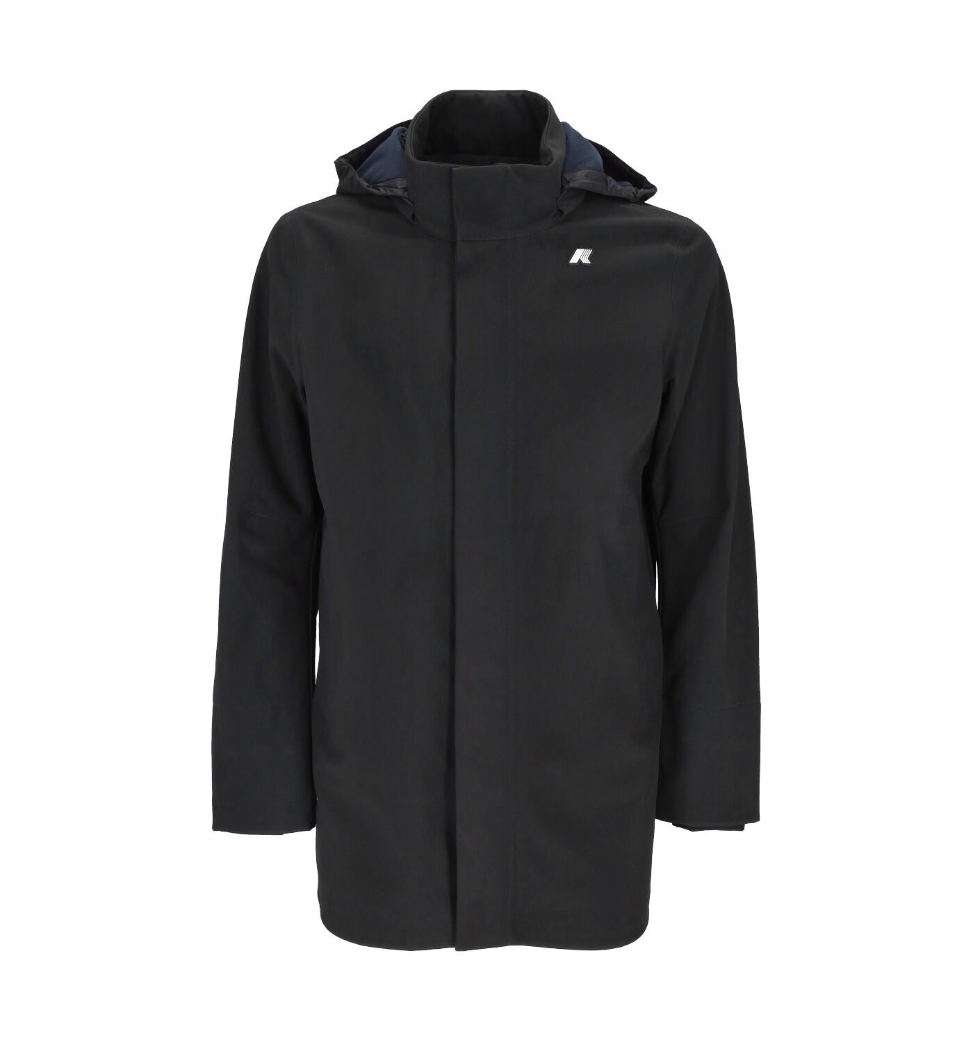 Giubbino parka 3/4 con cappuccio removibile, chiusura con zip e bottoni.