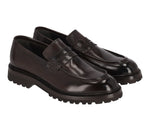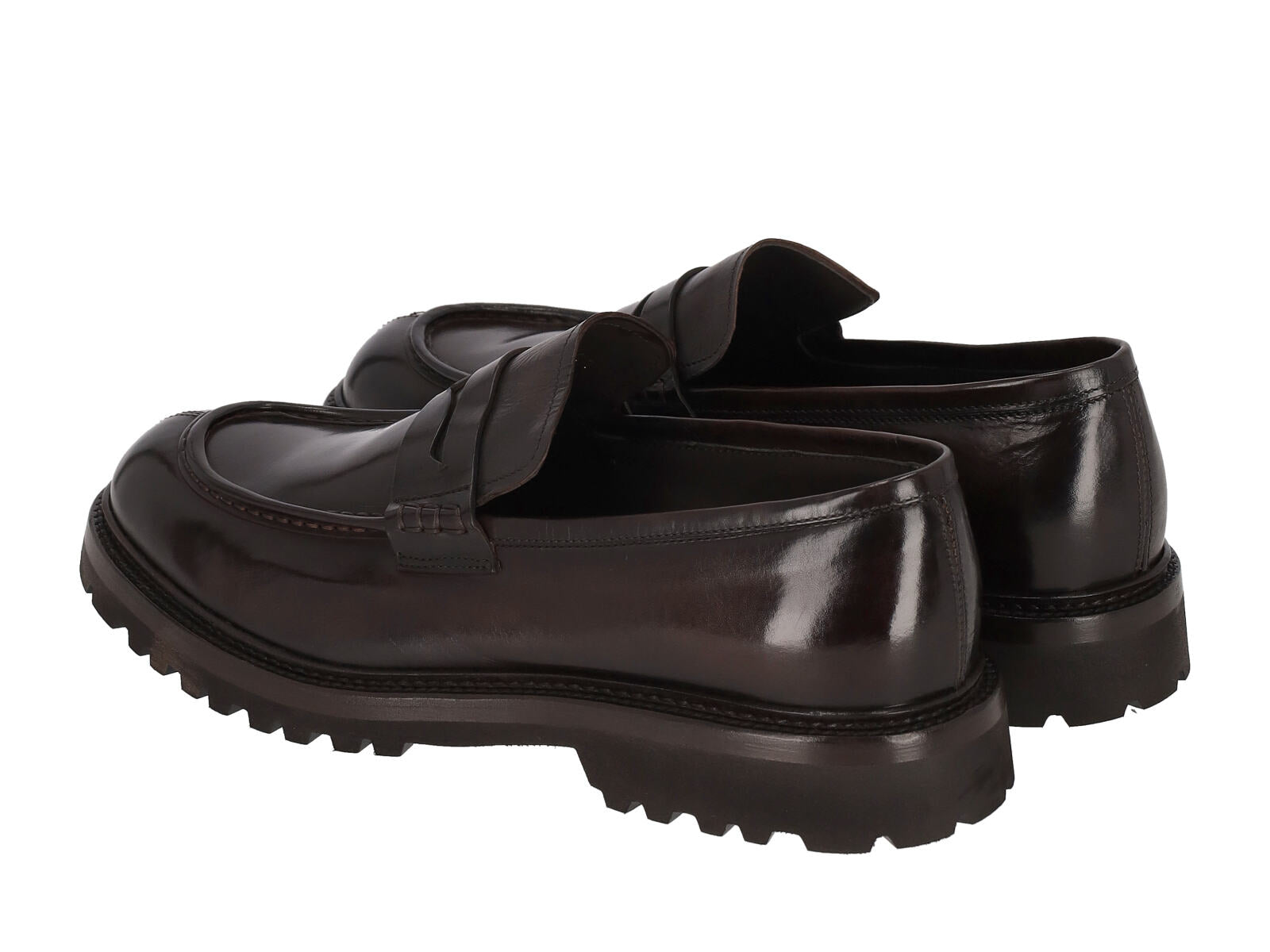 Mocassino in pelle con fondo roccia in gomma.