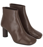 Tronchetto in pelle con tacco tocco lucido altezza 6 cm , chiusura con zip .