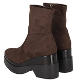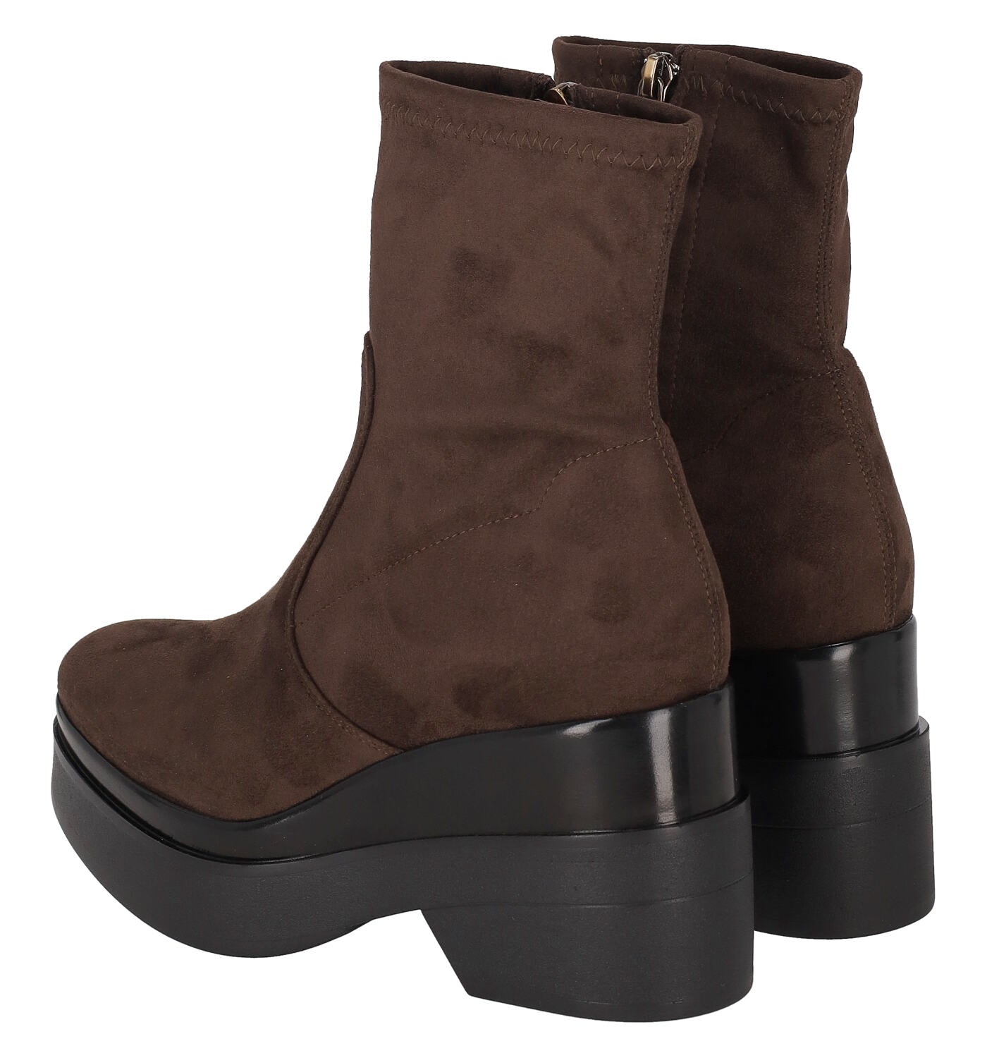 Tronchetto in camoscio con chiusura zip , zeppa altezza 8 cm.