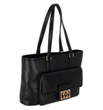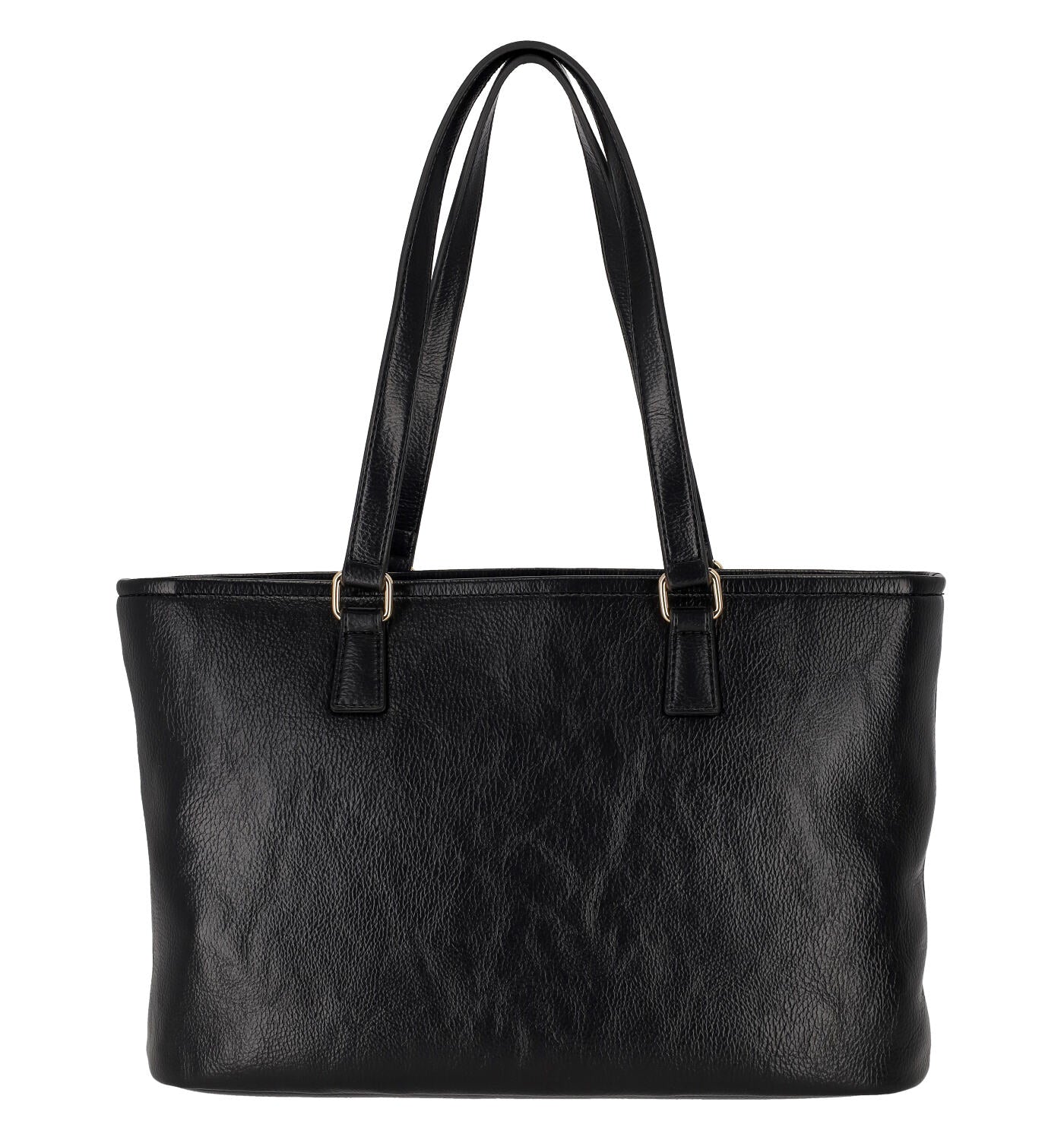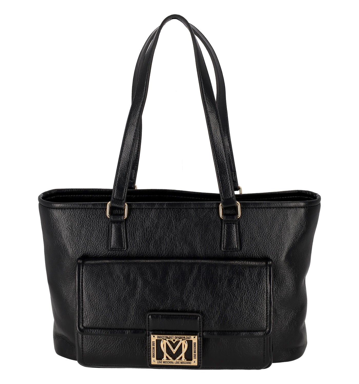 Shopping con logo sul davanti oro , tasca e chiusura con zip , doppi manici lunghi