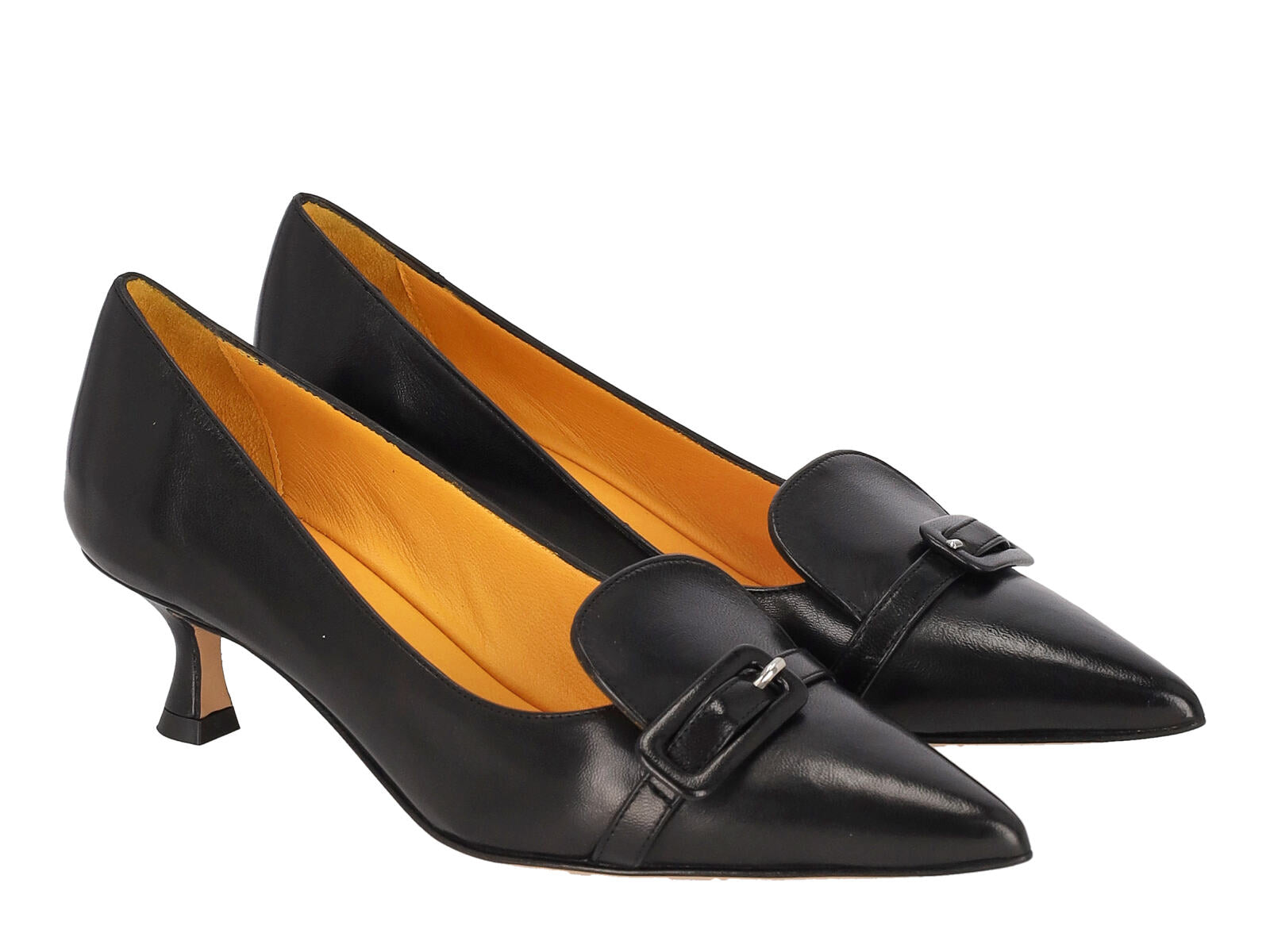 Decolletè in pelle con fibbia , tacco altezza 4 cm.