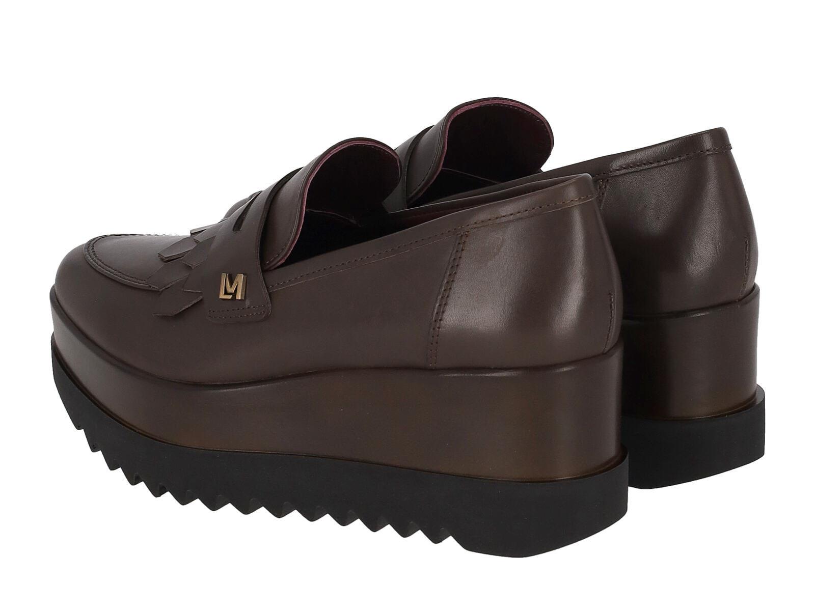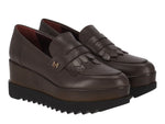 Mocassino in pelle con bendina , zeppa altezza 6 cm .