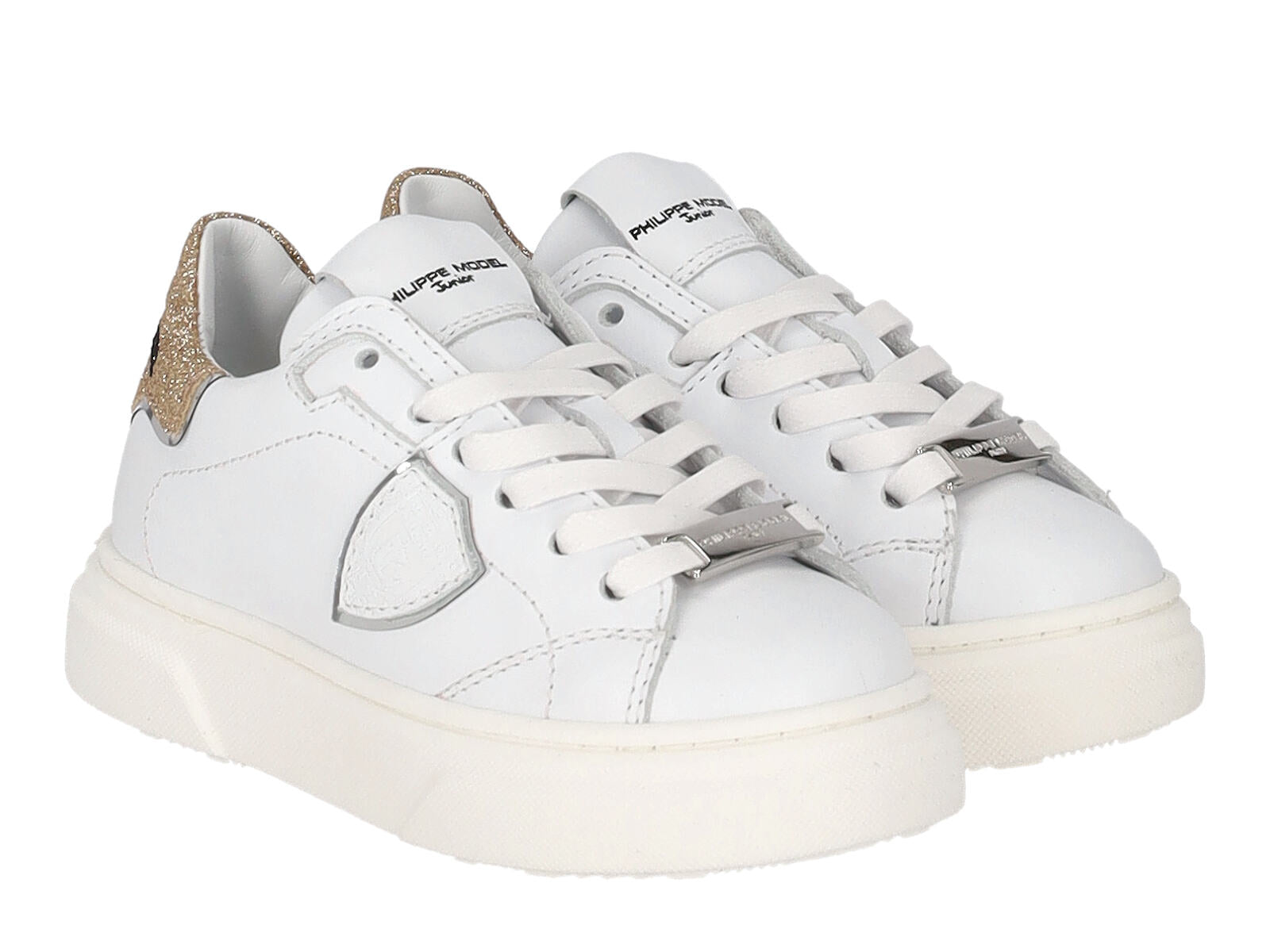 Sneakers in pelle con riporti glitterato