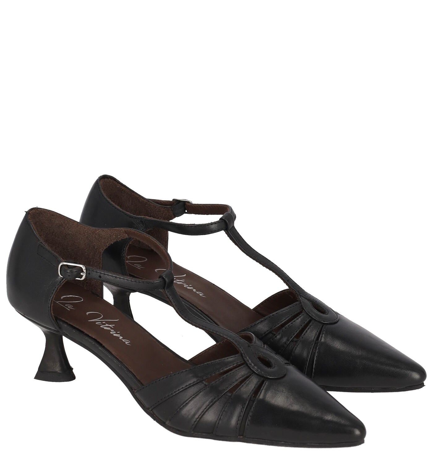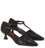 Decolleté t-bar in pelle con tacco altezza 5 cm .