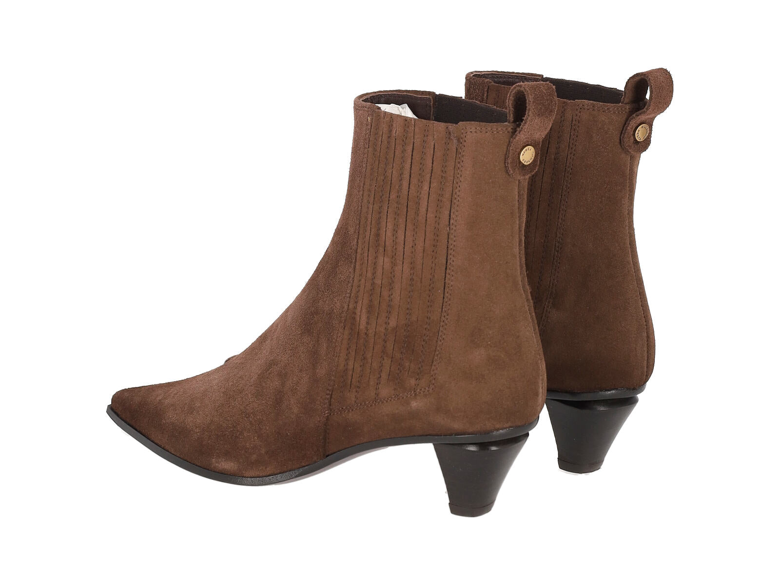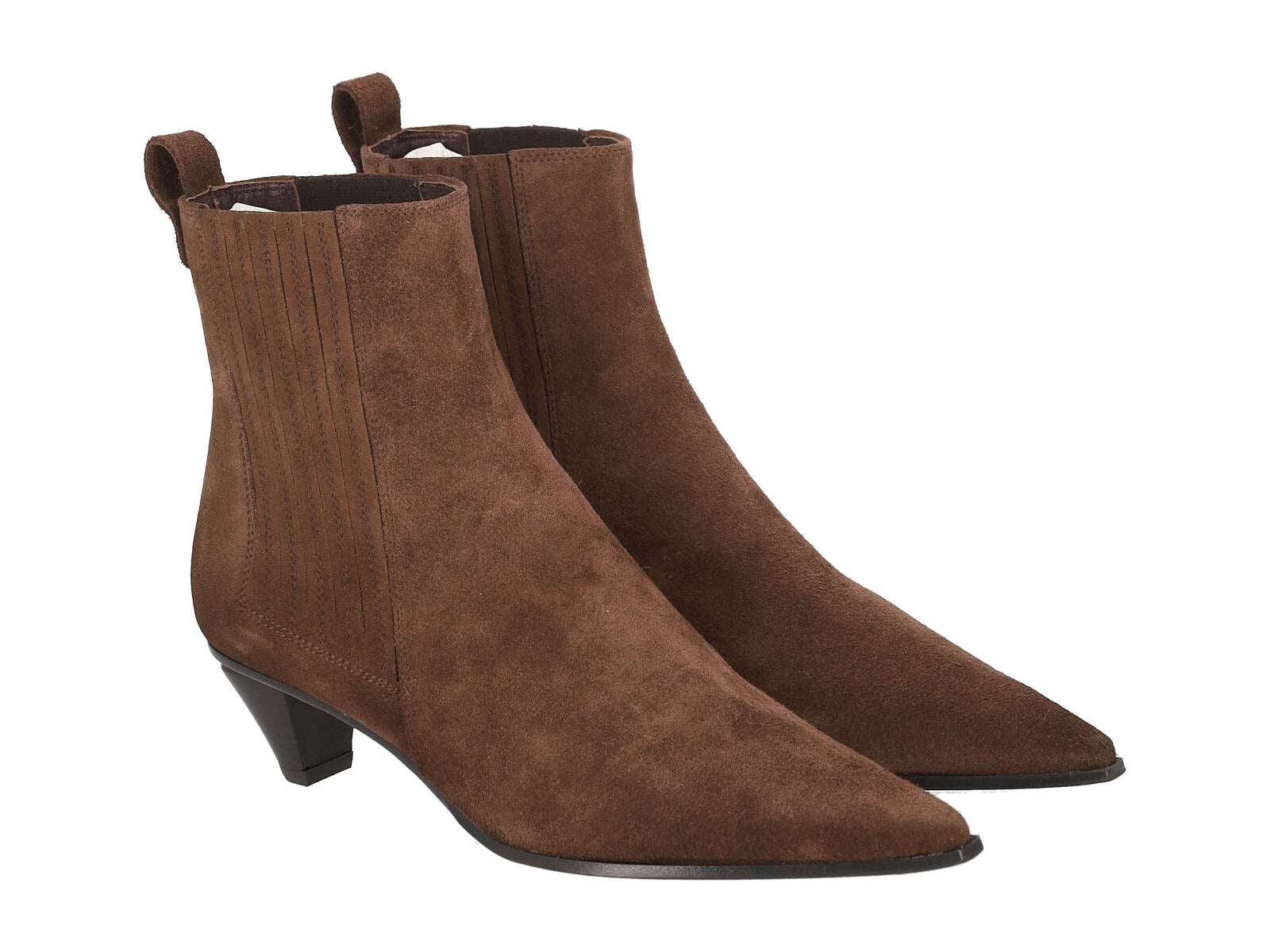 Stivaletto in camoscio con elastico , tacco altezza 5 cm.