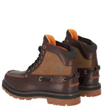 Polacchino barca in pelle e camoscio con lacci , suola in gomma.