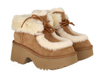 Stivaletto Esmee Lace in camoscio con risvolto pelliccia e lacci , suola in gomma .