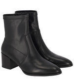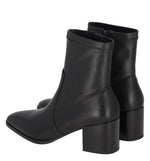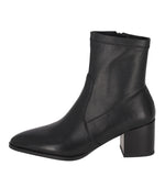 Tronchetto in ecopelle elasticizzata zip a lato, tacco largo altezza 6 cm .