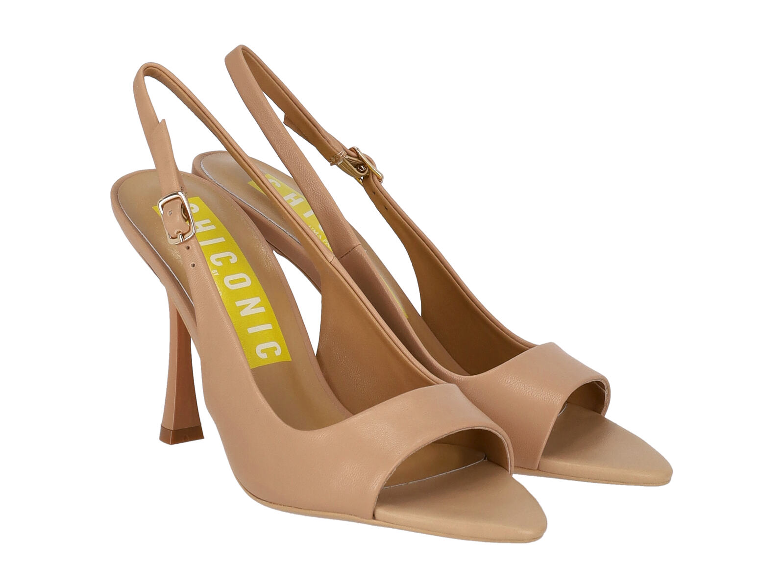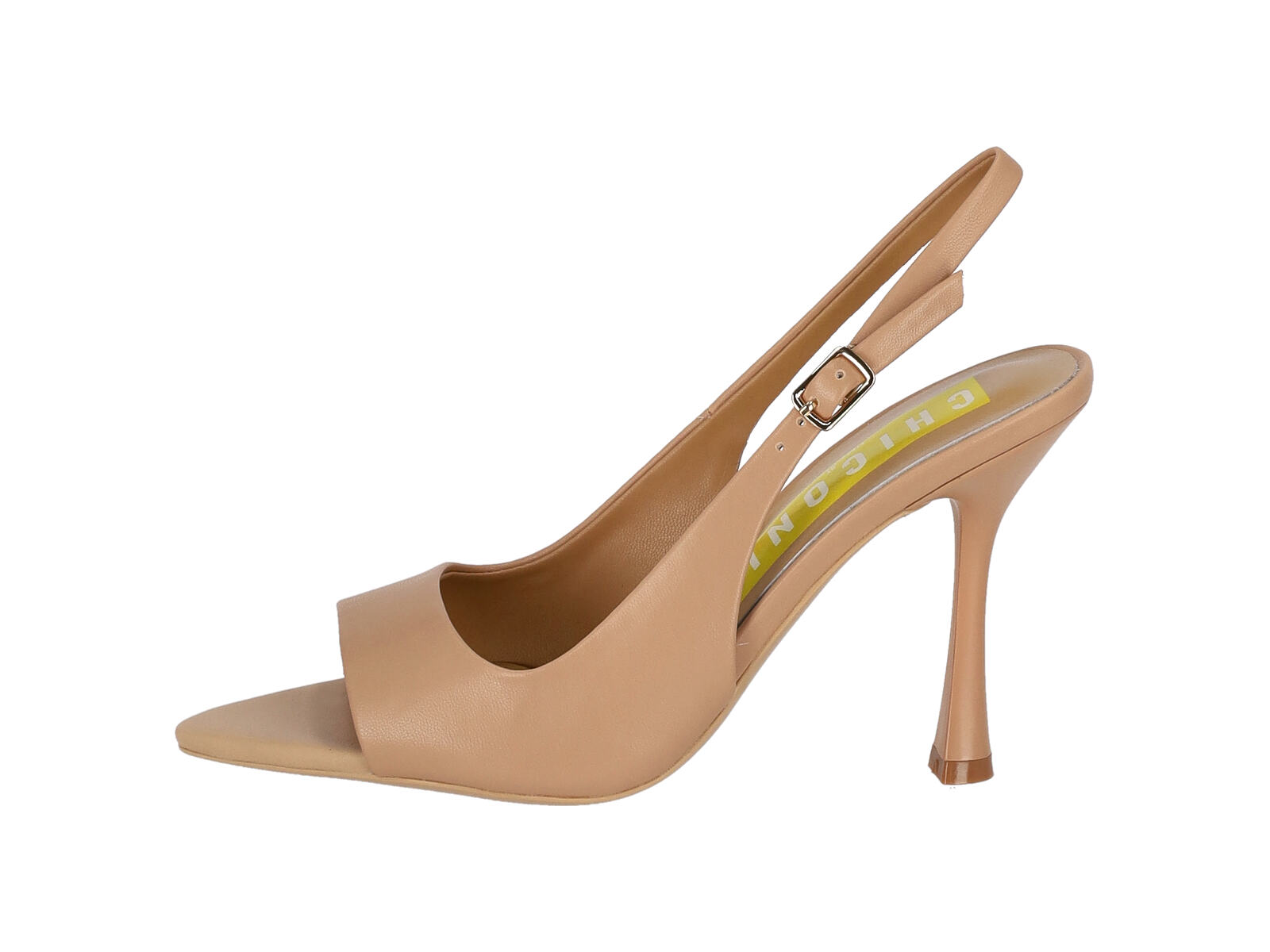 Chanel punta aperta con cinturino regolabile in pelle, tacco altezza 10cm.