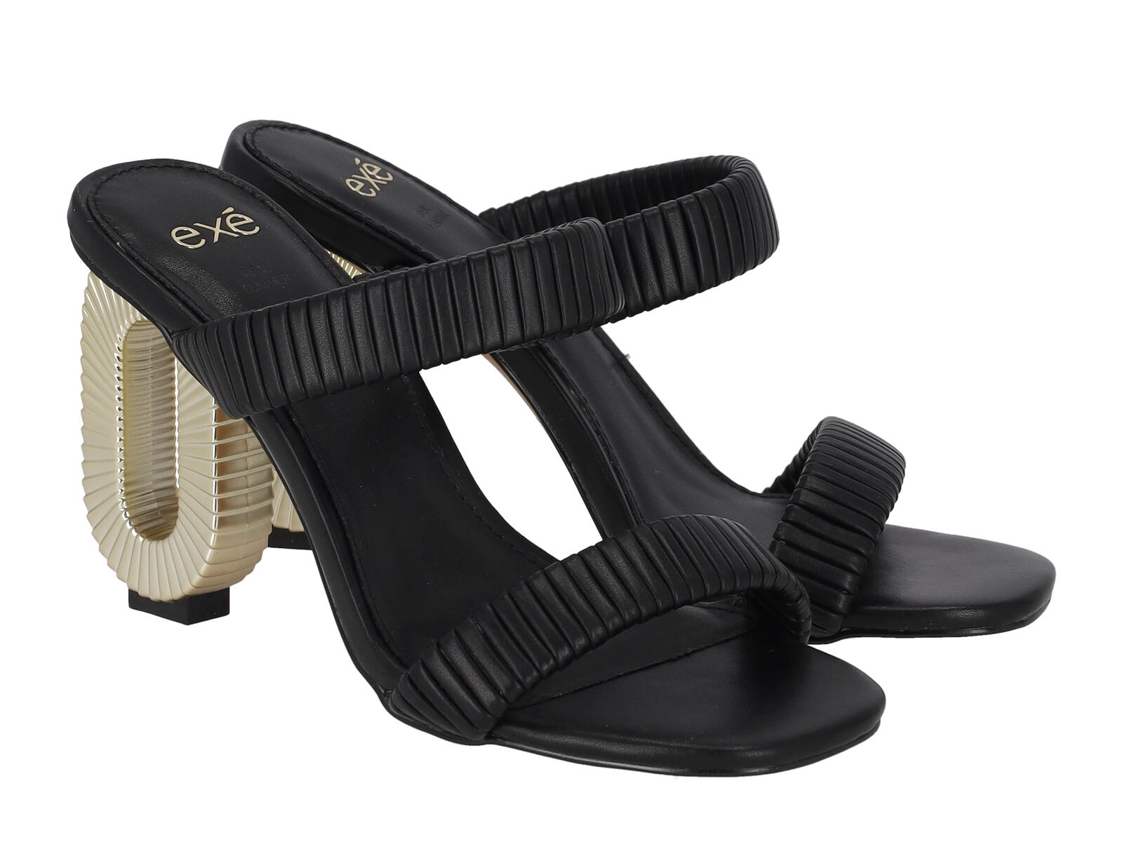 Scalzato in pelle con tacco ovale oro altezza 10cm.