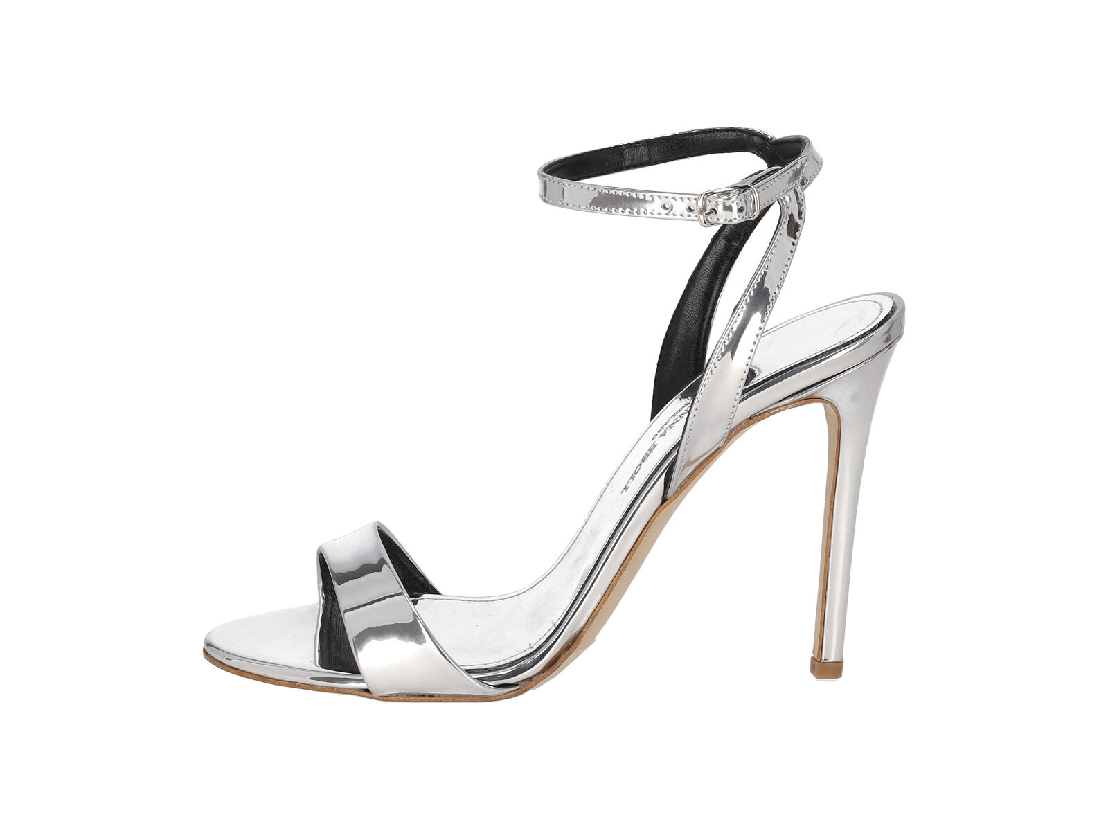 Sandalo in pelle specchiata con cinturino regolabile, tacco altezza 10cm.