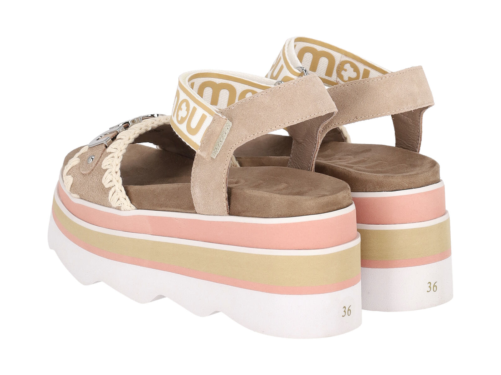 Sandalo con logo sul davanti, cinturino regolabile logato in tessuto. Suola in gomma altezza 7 cm .