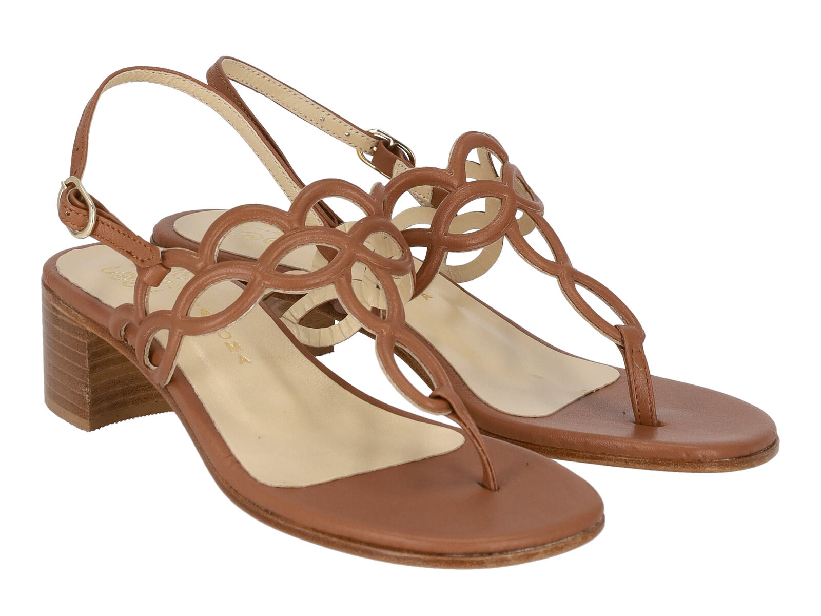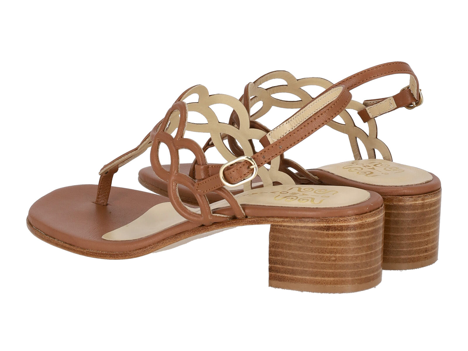 Sandalo infradito in pelle con cinturino regolabile , suola in cuoio con tacco largo altezza 4cm.