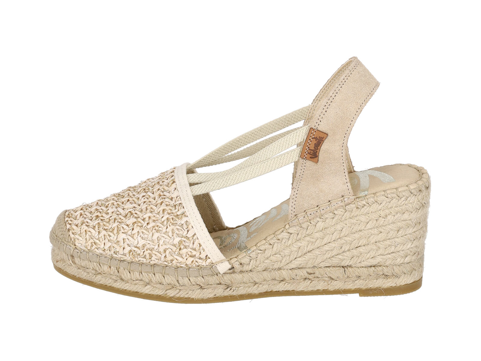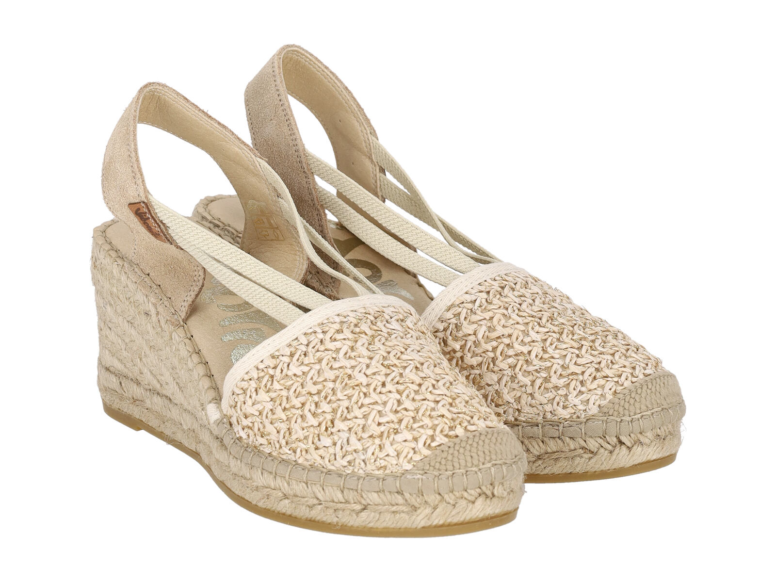 Sandalo espadrillas in tessuto e rafia con zeppa altezza 7cm