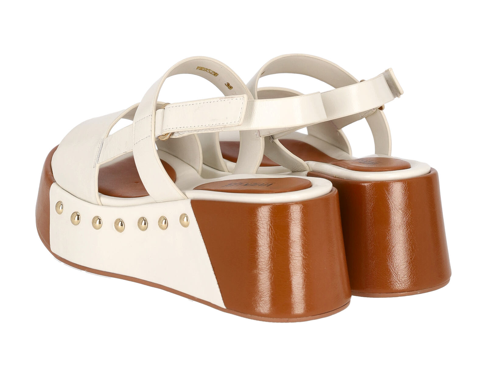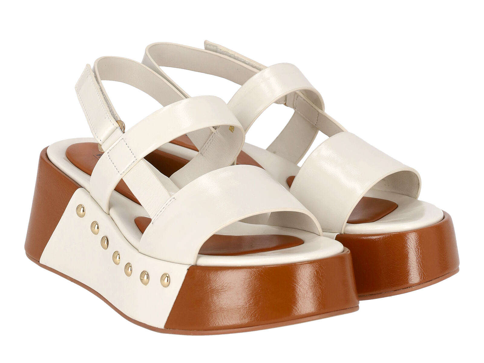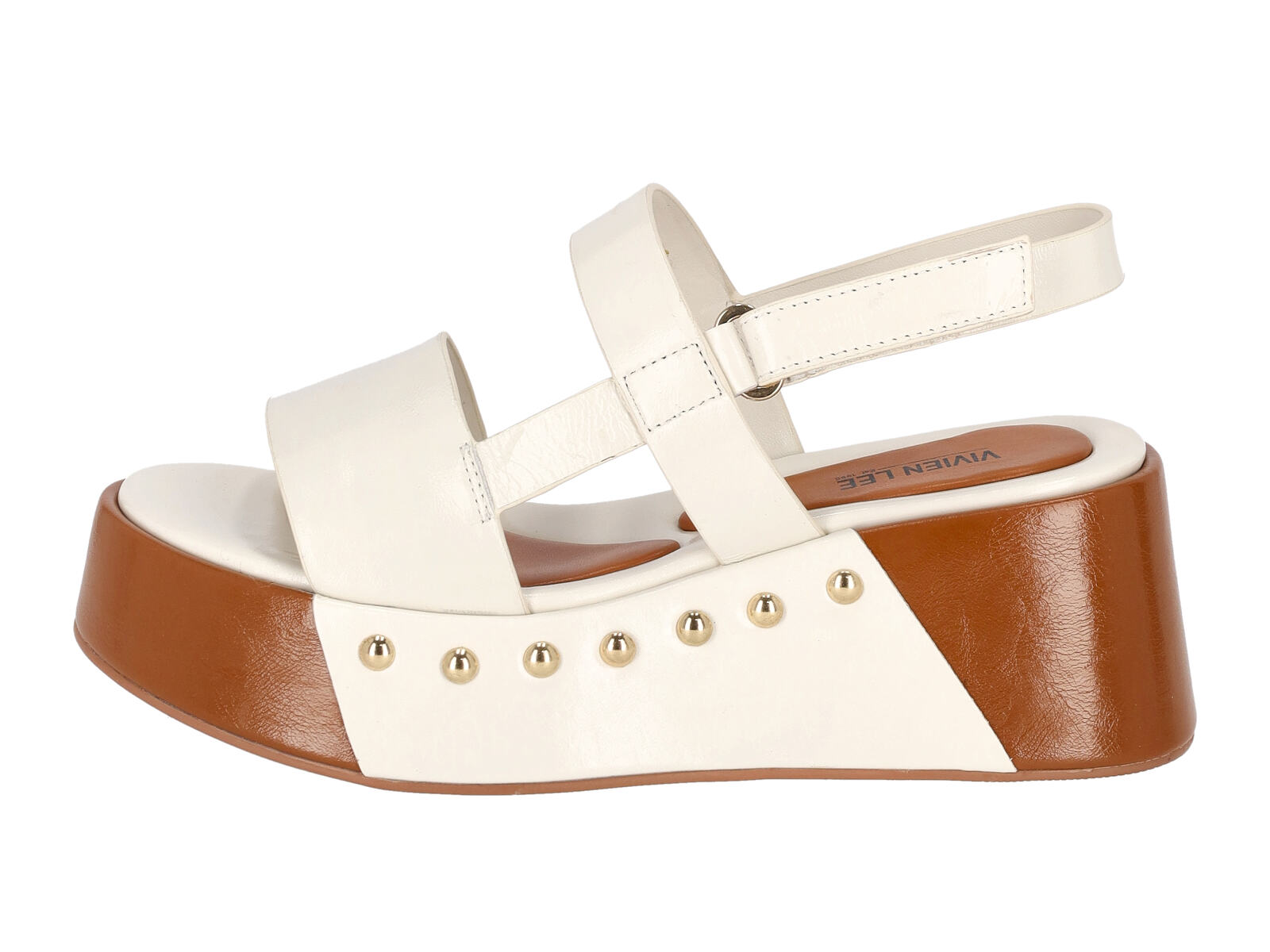 Sandalo in pelle con borchie , cinturino regolabile, zeppa altezza 7 cm